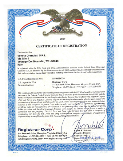 Veneta Granulati, A mother company of "Stradiotto" keeps consumer hygiene and quality demands foremost in mind. Our company has developed in full compliance with the strict standards set by international certi cation organisations, and monitors every stage of the production chain process at all times.